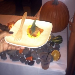It was a mix of Grey Goose, Cointreau, Domaine de Canton along with cantaloupe, pineapple, orange juice, gypsy tears bitters and a few other amazing flavors. Admittedly this was the last pairing and I was a little tipsy by this time so some of the details got lost on me. It was paired with an absolutely succulent lamb meatloaf made by Micah Edelstein of Nemesis Urban Bistro in Miami, FL. The flavors of the punch and the flavors of the lamb meatloaf were absolutely on point!!