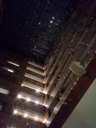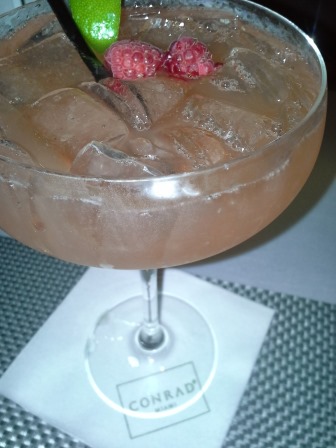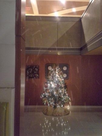 The Bar at Level 25, the bar/lounge located on the 25th floor atrium of the Conrad, not only made snow, they did it each evening every half hour over the holidays. After hearing about this phenomenon, I was obviously intrigued and a bit skeptical. I decided what better way to spend Christmas eve than for the ID2T crew to go check it out.