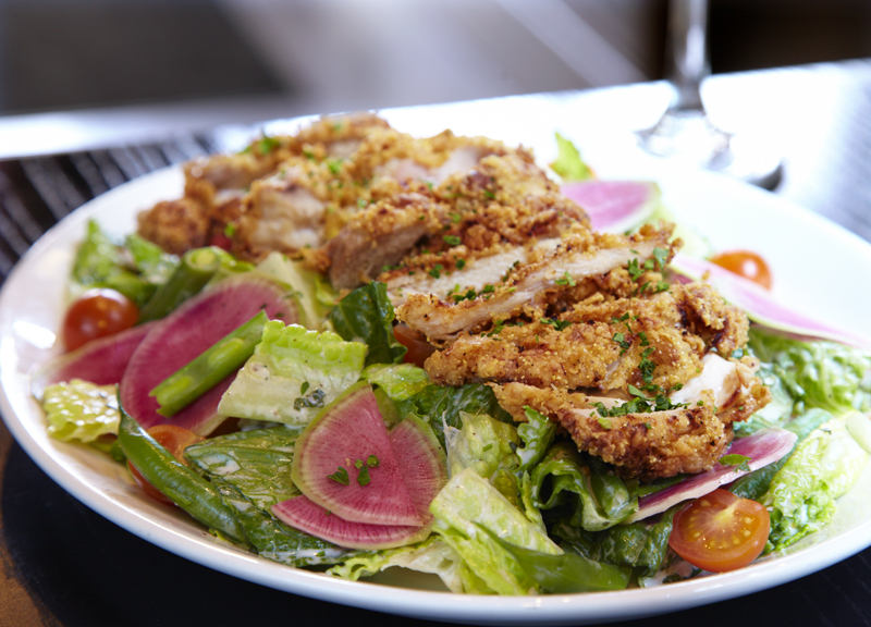 8. Cornmeal Fried Chicken Salad – Another uniquely Brixton offering, it is made with cage-free skinless, cornmeal fried chicken thigh over organic chopped romaine, blanched green beans, cherry tomatoes, sliced watermelon radishes and tossed with jalapeno-bacon buttermilk dressing. It is huge and delicious!! (And by the way, all of their food is delicious!)