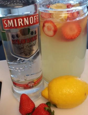 In a pitcher, make the lemonade per the can instructions. Add 1 cup of the Strawberry Smirnoff, 1/4 cup of Cointreau and 2 oz of sweet lemon liqueur. Add the strawberries and lemon slices as well as the fresh lemon juice. Stir together and put in refrigerator to chill. Serve in a highball glass over ice. Garnish with strawberry or lemon twist.
